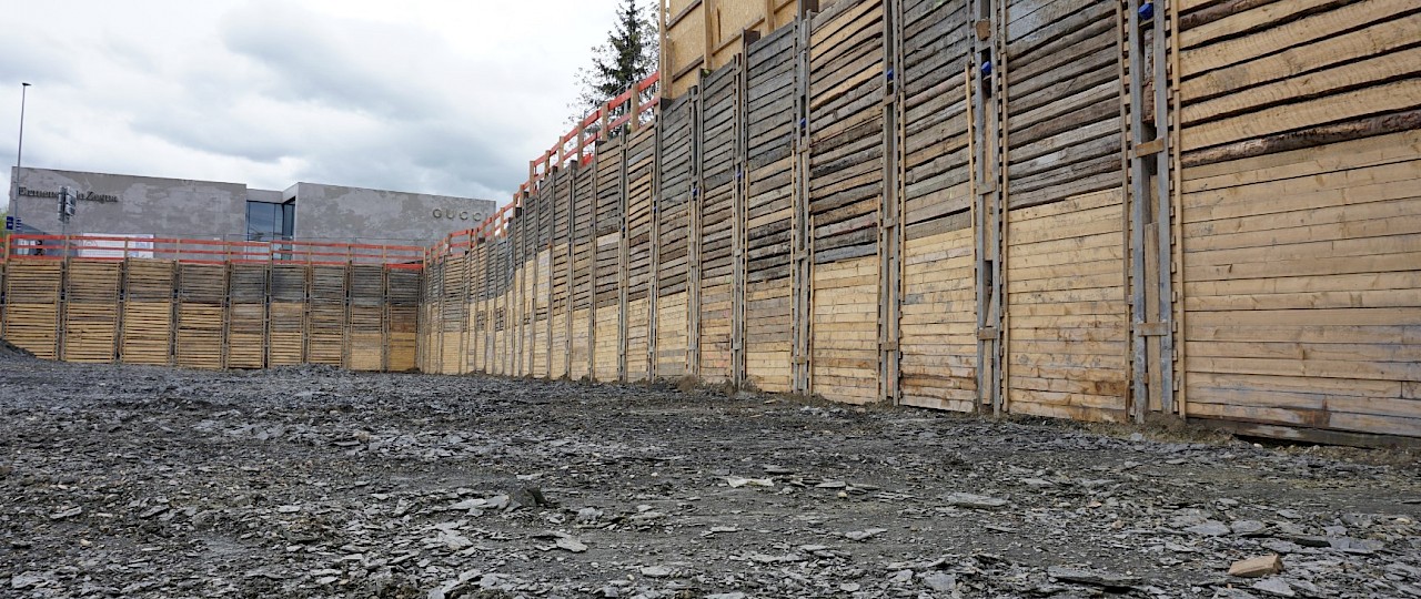 Abgestützt – Abstützung der Baugrube nach innen (wenn keine Rückverankerung möglich ist)