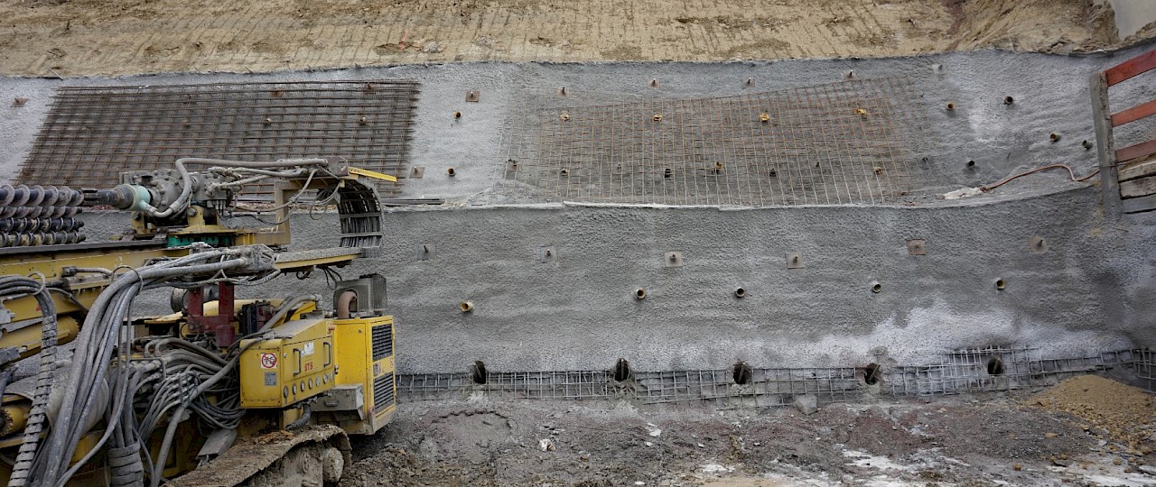 Bei der Rückverankerung werden Litzen oder Gewindestangen in die Bohrlöcher eingebaut und mit Zement vergossen. Dadurch werden Böschungen, Hänge oder Baugruben zusätzlich gesichert. Die Sicherungsmaßnahmen können temporär oder dauerhaft ausgeführt werden. Bei Bohrpfählen oder bei einem Berliner-Verbau gewährleistet eine Rückverankerung eine höhere Belastbarkeit, größere Tiefen und geringe Verformungen.
